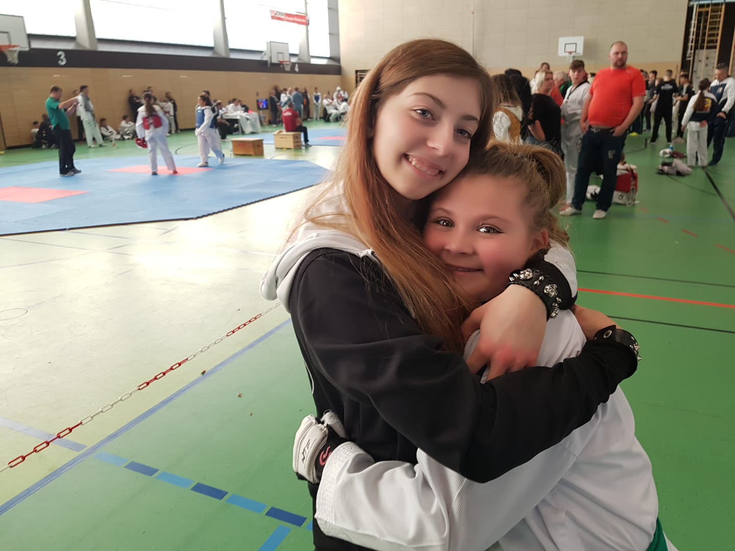 Danach ging es mit Leticia weiter. Sie war natürlich sehr angespannt, da sie mit 9 Jahren in der Altersklasse auch 11 Jährige Gegnerinnen haben konnte. Und das hatte sie auch. Leticia stellte sich aber ihrer Gegnerin und konnte in ihrem Halbfinalkampf auch einige Treffer landen. Nach einem Treffer am Hals musste sie aber wegen der Schmerzen aufhören. Dennoch hat Leticia super gekämpft und sicherte sich Bronze.