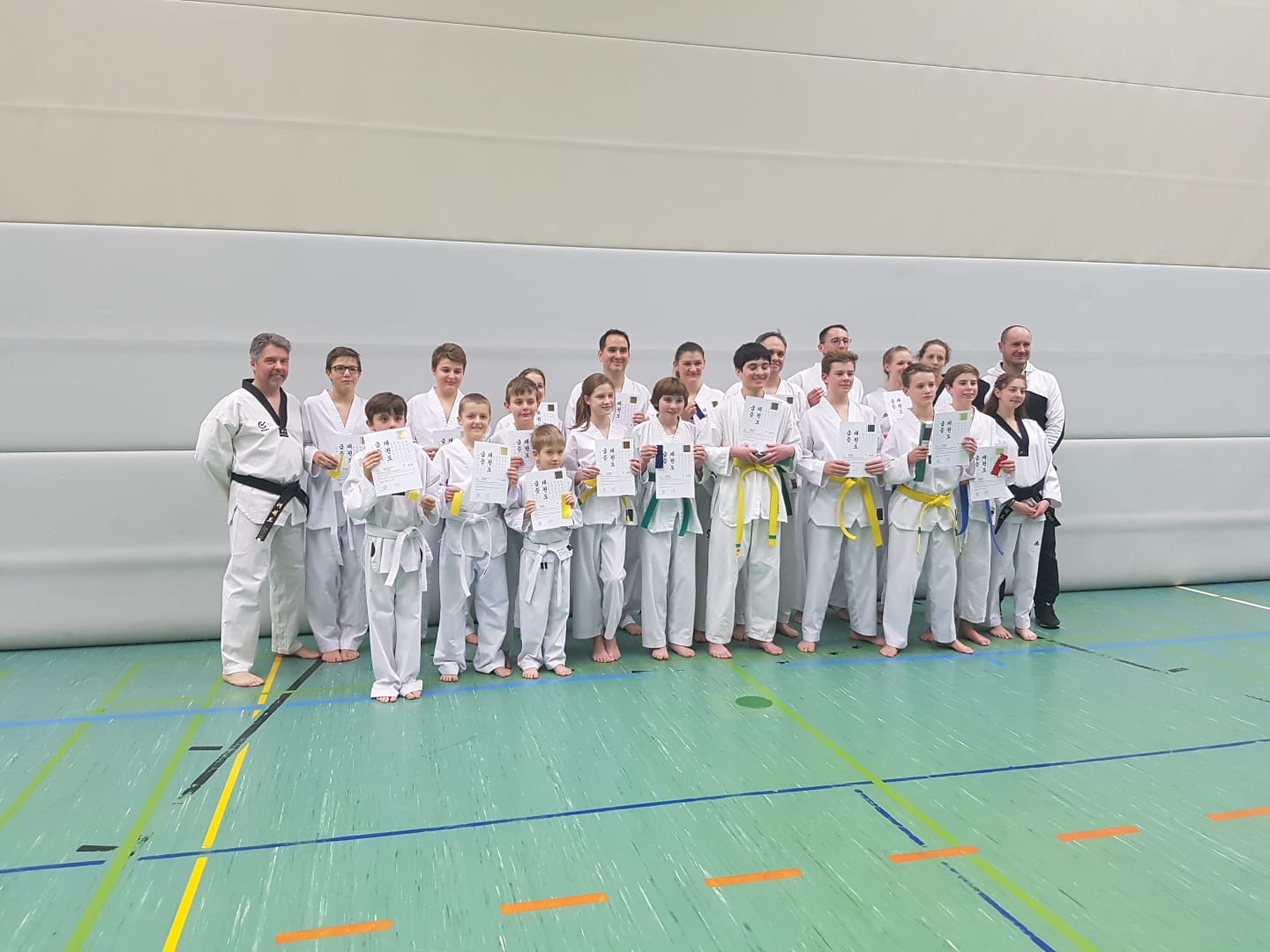 Am Freitag, dem 14. Dezember 2018, fand zum Jahresabschluss die letzte Gürtelprüfung in diesem Jahr statt. Insgesamt 18 Prüflinge stellten sich dieser Herausforderung unter den strengen Augen des Prüfers Michael Scherer zu bestehen. Gut vorbereitet vom Trainerteam Melanie, Martin, Anni und Michael meisterten aber alle Anwärter diese Aufgabe und konnten am Ende ihr angestrebtes Prüfungsziel, den nächsten Kup, erreichen.