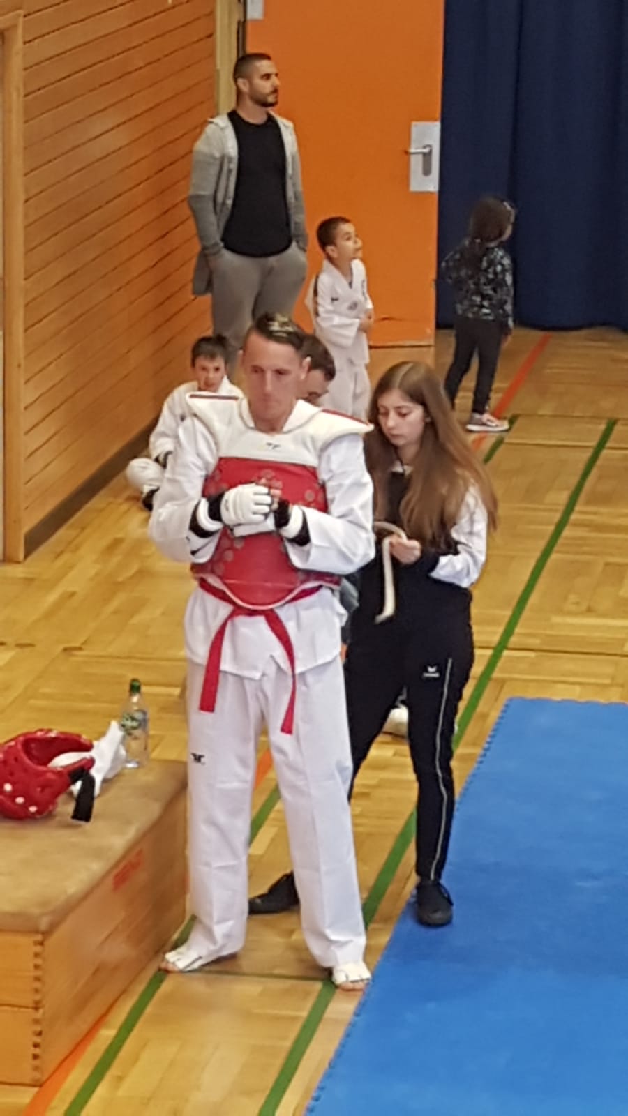 Am Sonntag, den 05.05.2019, fand in Pforzheim das Benefiz Turnier statt. Nach dem Motto "kick für den guten Zweck" machten sich die Wettkampf-Mannschaften des Taekwondo Clubs Spöck zusammen mit dem befreundeten Taekwondo Club ILYO Weingarten auf den Weg nach Pforzheim. Der gesamte Überschuss dieses Turniers wird für einen guten Zweck verwendet, so war es um so erfreulicher, dass sich insgesamt sieben Spöcker und zwei Weingartener zu diesem Turnier angemeldet hatten. Krankheitsbedingst konnten zwei Sportler leider nicht antreten. Die Trainer Ann-Kathrin Kirsch und Michael Scherer hatten also genug zu tun, aber sie stimmten sich ab, so dass Michael das Aufwärmen mit Pratzen und Anni das Coachen an der Fläche übernahm.