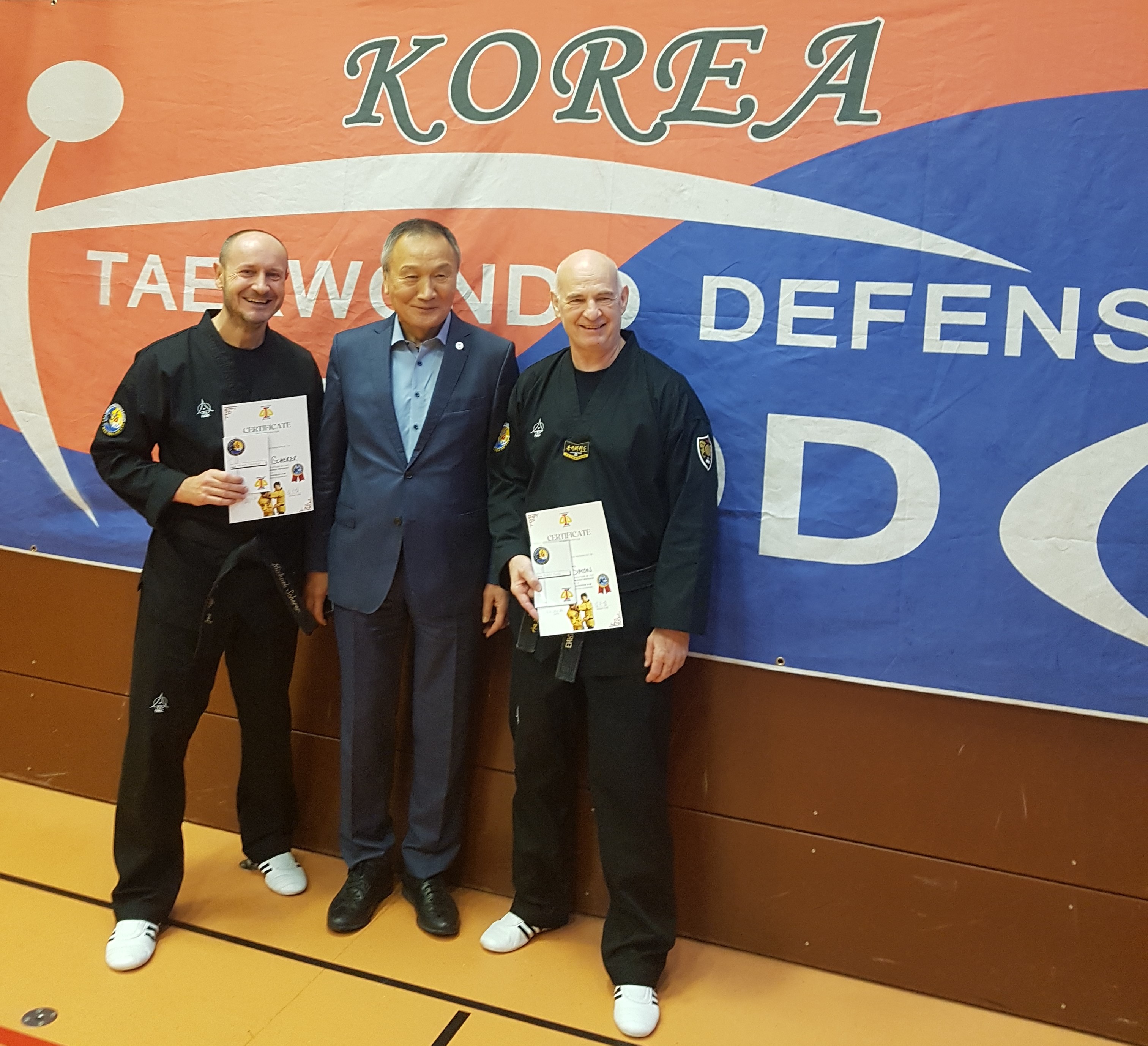 Am Ende überzeugte Michael durch seine Leistungen bei der Prüfung, so dass er von Großmeister Kim den 3. DAN im Taekwondo-Defense überreicht bekam.