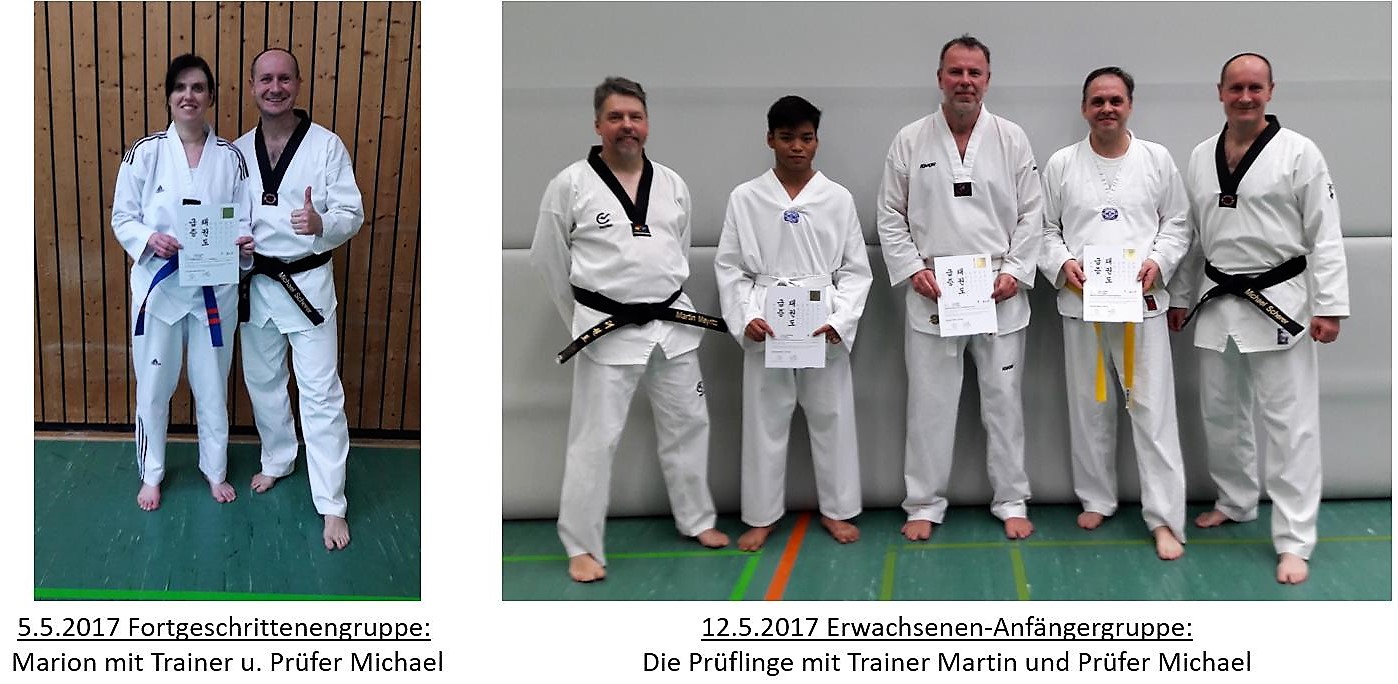 Am Freitag, den 05. Mai 2017, fand in der Fortgeschrittenengruppe und am Freitag, den 12. Mai 2017, in der Erwachsenen-Anfängergruppe des Taekwondo Club Spöck e.V. eine Gürtelprüfung statt. Gut vorbereitet von ihren Trainern Michael Scherer und Martin Meyritz überzeugten die insgesamt vier Prüfungsanwärter den Prüfer Michael Scherer, so dass am Ende jeder sein angestrebtes Prüfungsziel mit guten bis sehr guten Leistungen erreichte.