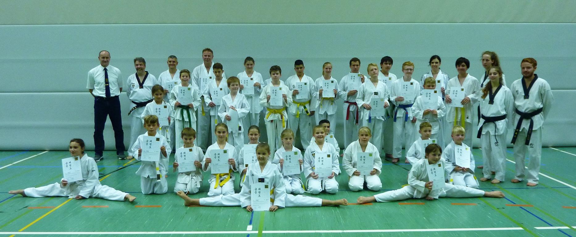 Nach knapp 3 Stunden Prüfung ging ein langer Abend zu Ende und alle Prüflinge konnten überglücklich ihre Urkunde zum nächsthöheren Kup in Händen halten.