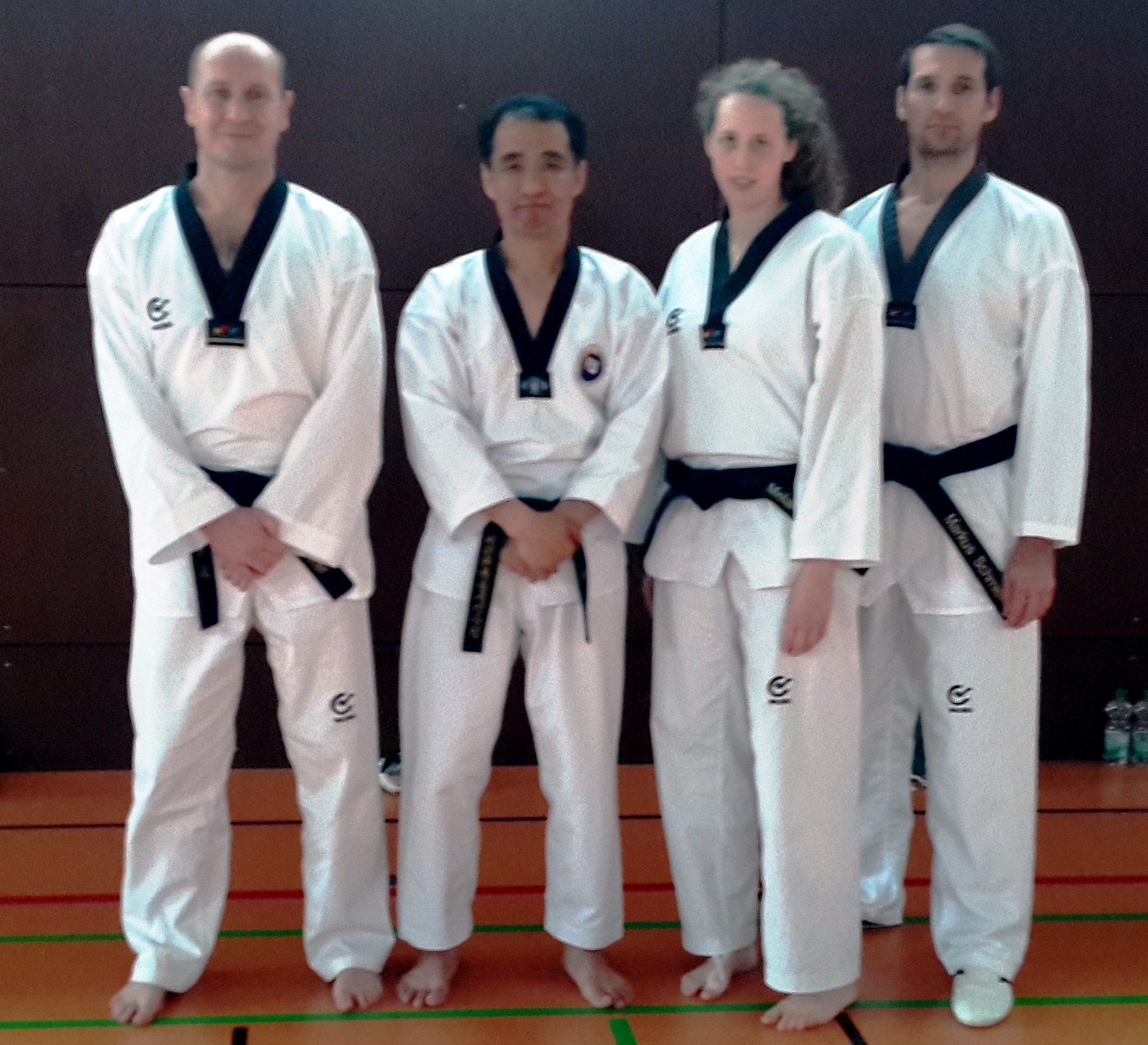 Vom Taekwondo Club Spöck machten Melanie Rössler und Michael Scherer zusammen mit Markus Schmiel vom Taekwondo Club ILYO Weingarten auf den Weg nach Sindelfingen, um bei Großmeister Jaeyeong Um, dem Autor des Buchs "KTA Poomsae Application" und Kukkiwon Poomsae-Instruktor zu trainieren.