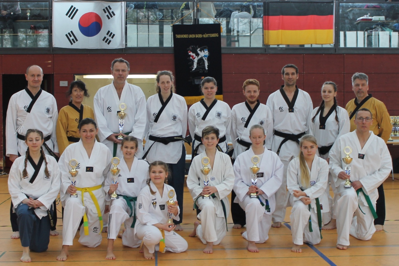 Am Sonntag, den 18. März 2018 fanden die Badischen Poomsae-Meisterschaften statt, zu den die Taekwondo-Union Baden-Württemberg nach Wiesloch eingeladen hatte. Über 220 Teilnehmer aus ganz Baden traten an, um sich im Formenlauf (Poomsae) zu messen. Darunter waren auch zwölf Sportler vom Taekwondo-Club Spöck, die in den Wochen zuvor von ihrem Trainer Michael Scherer sehr gut auf das Turnier vorbereitet wurden. Jeder musste innerhalb seiner Altersklasse zwei Formen laufen, die von den fünf Punktrichtern getrennt nach Technik (Präzision) und Präsentation (Ausdruck) bewertet wurden. Innerhalb jeder Klasse wurden der erste, der zweite und zwei dritte Plätze mit Pokalen bzw. Medaillen honoriert. Der Taekwondo Club Spöck konnte elf Pokale gewinnen (6 x 1.Platz; 2 x 2.Platz und 3 x 3.Platz) und viele neue Erfahrungen sammeln. Herzlichen Glückwunsch allen Teilnehmern!!