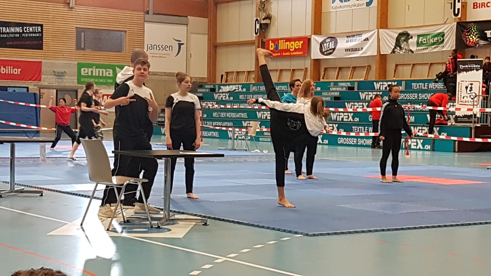 Dann ging es Schlag auf Schlag, die Coaches Anni und Michael waren gefordert … Da die Wettkämpfe in zwei Hallen ausgetragen wurden, mussten wir uns leider etwas aufteilen, versuchten aber trotzdem, so gut es ging, die Mannschaftskameraden anzufeuern.