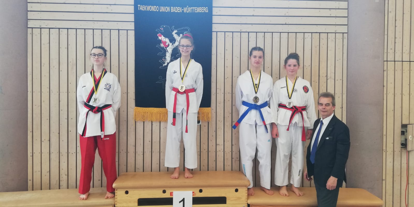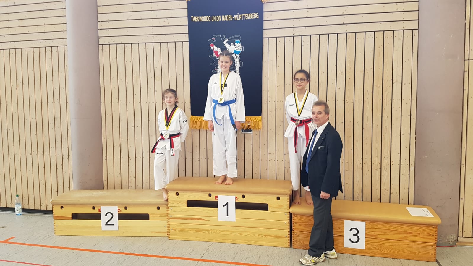 Die Trainer Ann-Kathrin Kirsch und Michael Scherer sind sehr zufrieden mit dem Abschneiden bei den Badischen Poomsae Meisterschaften. Am meisten freut sie, dass jeder eine Medaille erkämpfen konnte und das wurde mit dem 5. Platz in der Vereinswertung honoriert.