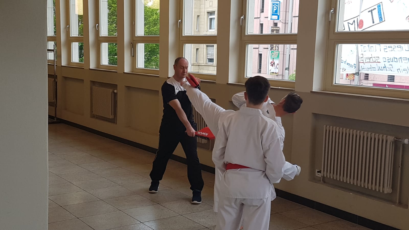 Am Sonntag, den 05.05.2019, fand in Pforzheim das Benefiz Turnier statt. Nach dem Motto "kick für den guten Zweck" machten sich die Wettkampf-Mannschaften des Taekwondo Clubs Spöck zusammen mit dem befreundeten Taekwondo Club ILYO Weingarten auf den Weg nach Pforzheim. Der gesamte Überschuss dieses Turniers wird für einen guten Zweck verwendet, so war es um so erfreulicher, dass sich insgesamt sieben Spöcker und zwei Weingartener zu diesem Turnier angemeldet hatten. Krankheitsbedingst konnten zwei Sportler leider nicht antreten. Die Trainer Ann-Kathrin Kirsch und Michael Scherer hatten also genug zu tun, aber sie stimmten sich ab, so dass Michael das Aufwärmen mit Pratzen und Anni das Coachen an der Fläche übernahm.