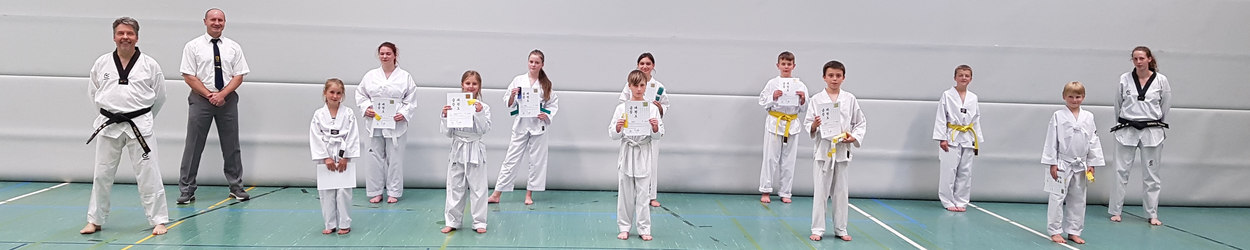Am Freitag, den 24. Juli 2020 fand beim Taekwondo Club Spöck e.V. eine Kup-Prüfung statt. Da sich insgesamt 22 Prüflinge angemeldet hatten, wurde die Prüfung in zwei Gruppen aufgeteilt. In der ersten Gruppen stellten sich 10 Prüfungsanwärter der Herausforderung den nächsten Kup zu erhalten. Unterstützt von den Trainern Melanie und Martin konnten alle Prüflinge ihr Prüfungsziel vor den Augen Augen des Prüfers Michael Scherer erreichen.