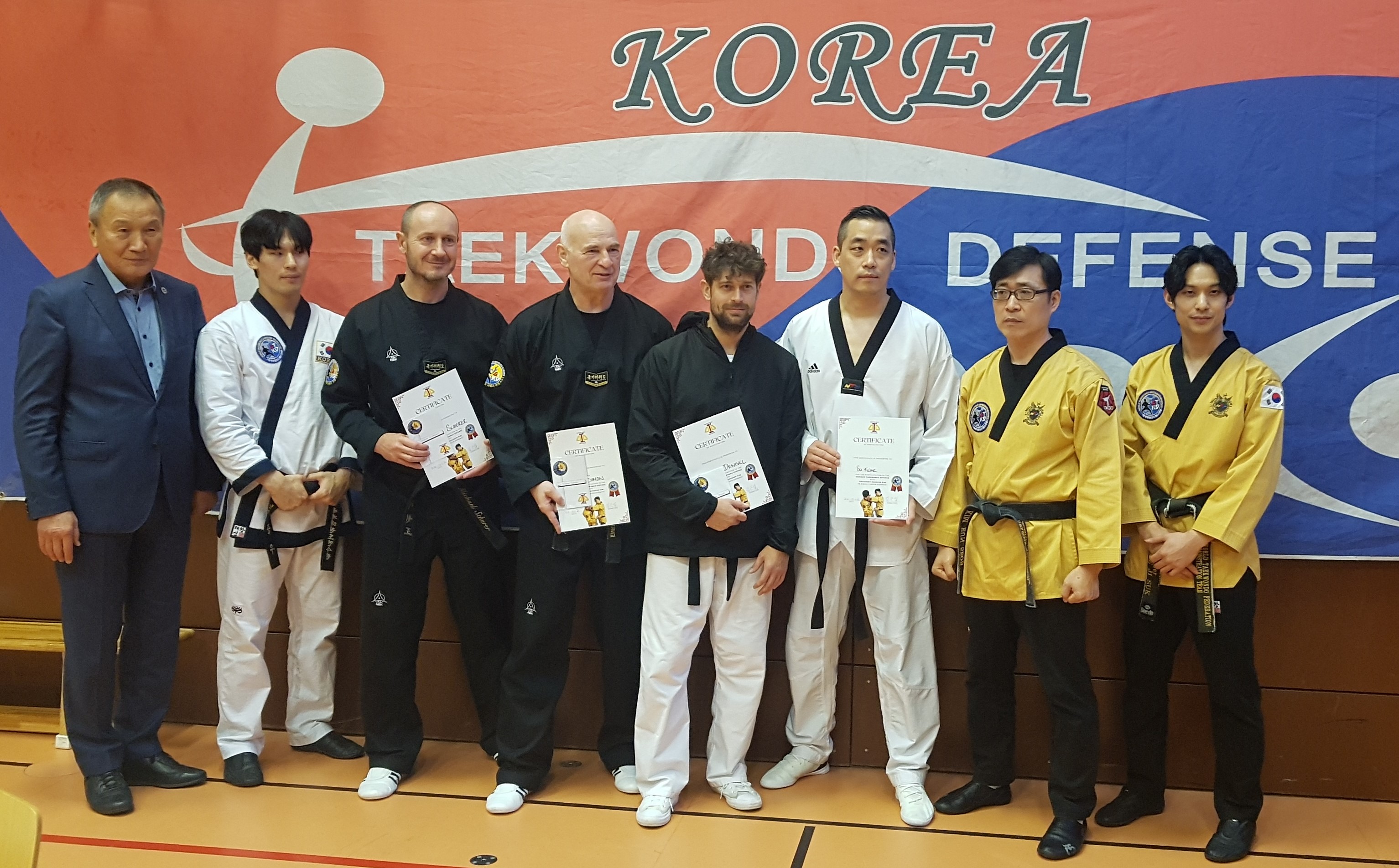 Bereits zum fünften Mal fand in Sindelfingen ein Taekwondo-Defense Seminar unter Leitung von Großmeister Kim satt, der dafür extra aus Korea anreiste um zusammen mit seinen Meisterschülern Taekwondo-Defense zu unterrichten. Unser Trainer Michael hat bisher bei allen fünf dieser neuntägigen Seminare teilgenommen, die von Soo-Nam Park aus Stuttgart organisiert wurden. Zusammen mit seinem guten Freund Enrico Simon vom befreundeten Taekwondo Verein aus Mühlacker nahm Michael die Strapazen auf sich und stellte sich dieses Mal der Herausforderung der Prüfung zum 3. DAN im Taekwondo Defense. Da es bereits Michaels dritte Dan-Prüfung bei Großmeister Kim war, wusste er, dass er auf alles vorbereitet sein musste, denn es steht bis zur Prüfung nie so genau fest, was bei der Dan-Prüfung gemacht werden soll ... und so war es auch dieses Mal wieder.