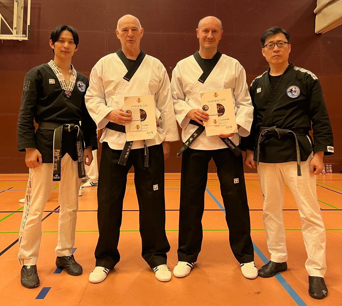Meister Lee Ji Suk, Enrico Simon, Michael Scherer, Großmeister Kim Eunseob