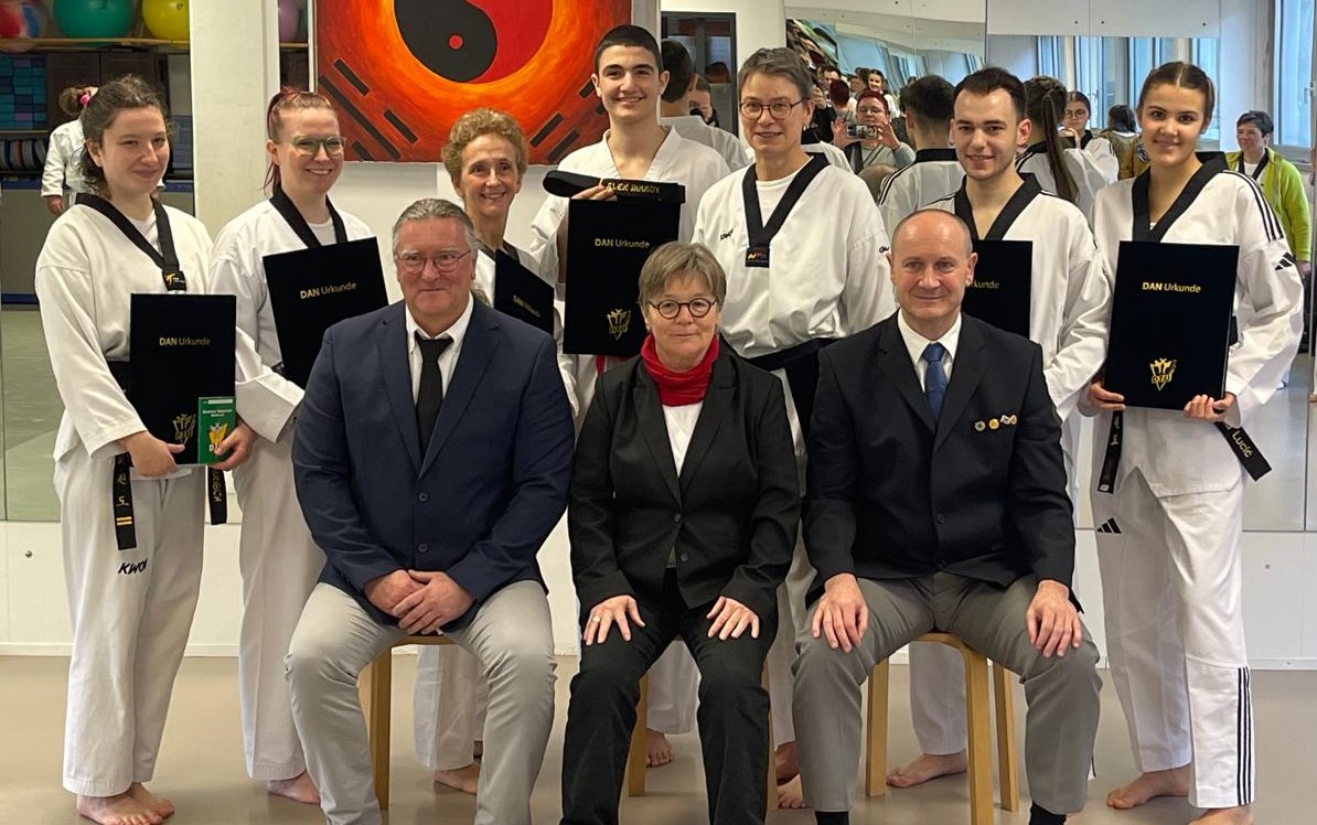 Am Samstag, den 1. Februar 2025, fand in der Kampfsportschule "In Nae" in Karlsruhe eine Vereins-Dan-Prüfung statt, zu der sich Leonarda und Benjamin angemeldet hatten. Da die Partnerübungen mit eigenen Partnern durchgeführt werden müssen, wurde Leonarda von Leticia und Benjamin von Sören unterstützt, ein Dankeschön noch an die beiden. Bei der Prüfung konnten die beiden die Prüfer (Michael Scherer, Thomas Wernet und Regina Speulta) von ihrem Können überzeugen, so dass Sie am Ende ihre Dan-Urkunde ausgehändigt bekommen haben.