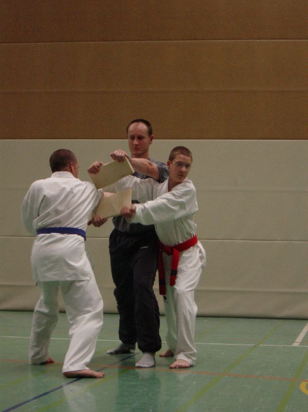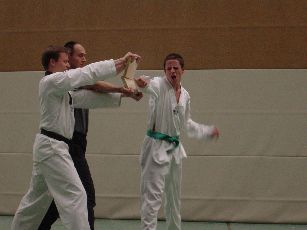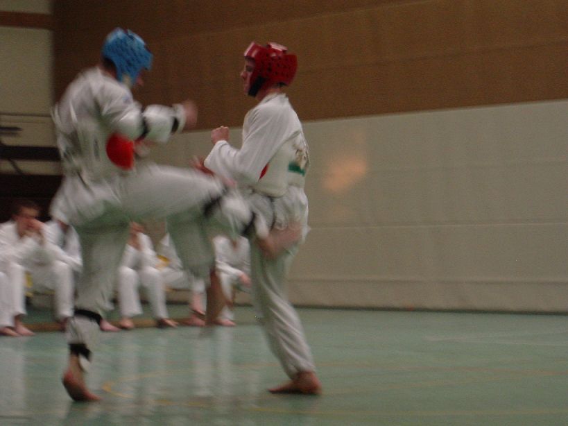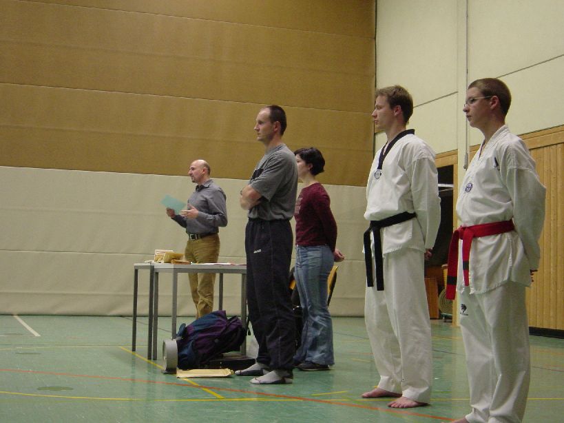Kupprüfung am 14.05.2004 Am Freitag, den 14. Mai fand unsere erste Gürtelprüfung in diesem Jahr statt. Insgesamt 23 Taekwondoin hatten sich auf dieses Ereignis sorgfältig vorbereitet, um ihren nächst höheren Kup-Grad zu erhalten. Die Weißgurte kamen als erste dran und so prüfte Klaus-Dieter Raab aus Hambrücken gruppenweise über die Gelb-, Grün-, Blau- bis zu den Rotgurten. Alle Prüflinge konnten den Prüfer von Ihrem Können überzeugen, so dass alle die Prüfung bestanden.