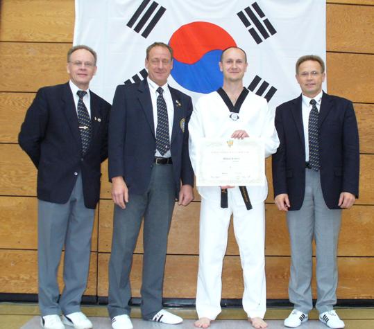 Diese Prüfungsteile wurden von Michael Scherer und seinem Team perfekt präsentiert, was das dreiköpfige Prüfungskommmitte, bestehend aus dem Präsidenten der Deutschen Taekwondo Union Heinz Gruber, dem Bundesbreitensport Referenten Heinrich Magosch und dem Bundesprüfungsreferenten Klaus Ermler, mit sehr guten Noten honorierte.